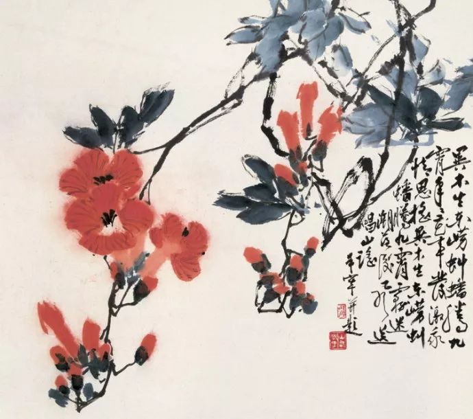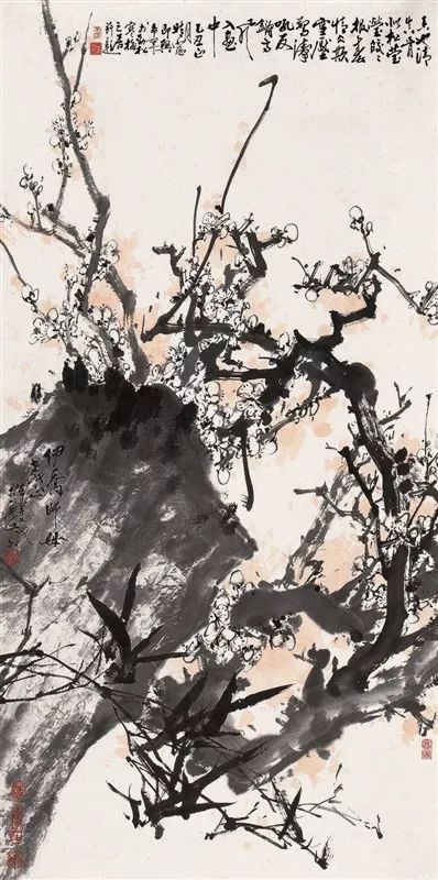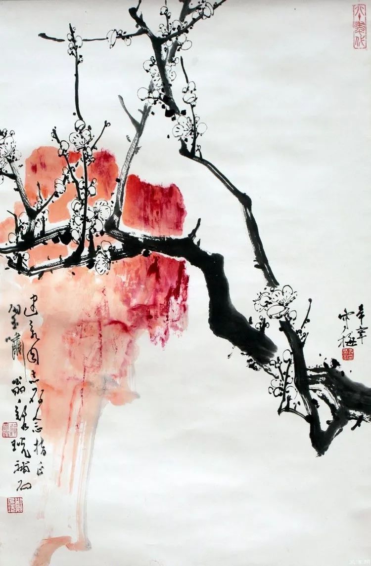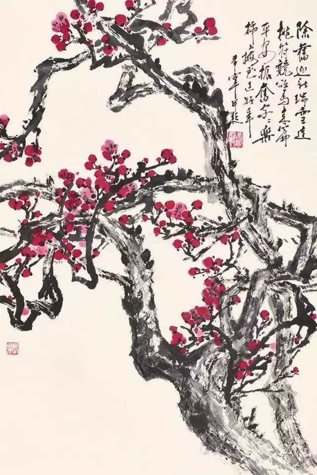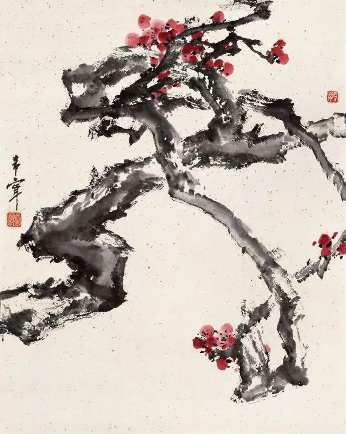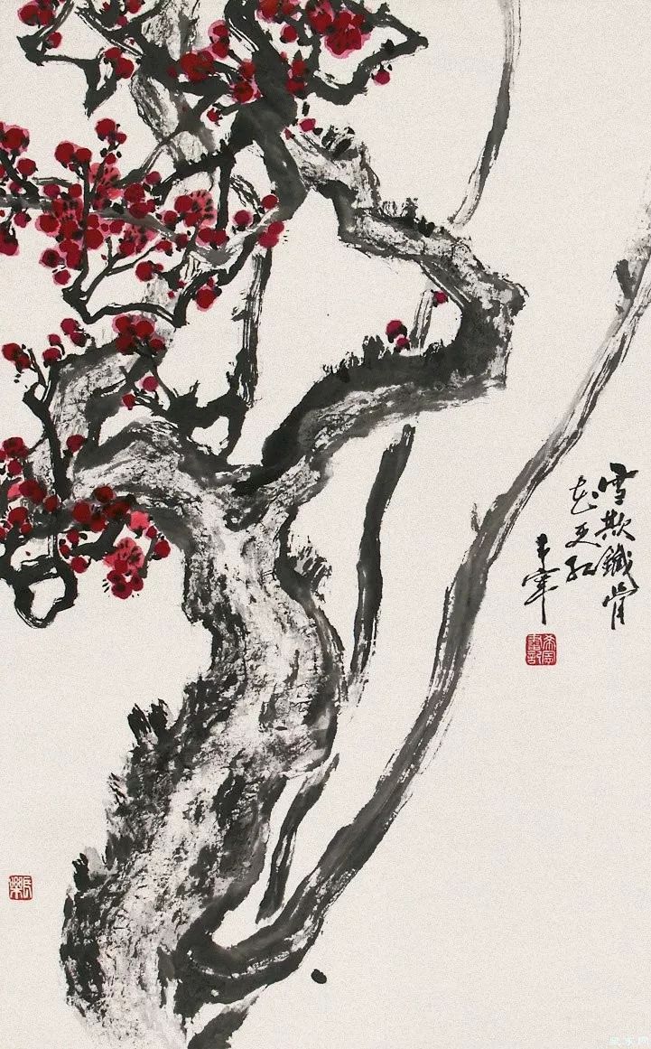 他尤擅画整株老梅,干如铁铸,花透冰魂,动东谈主心魄。他创作的梅花,诗、书、画、印相融,是东谈主格与情感的外化与清醒。