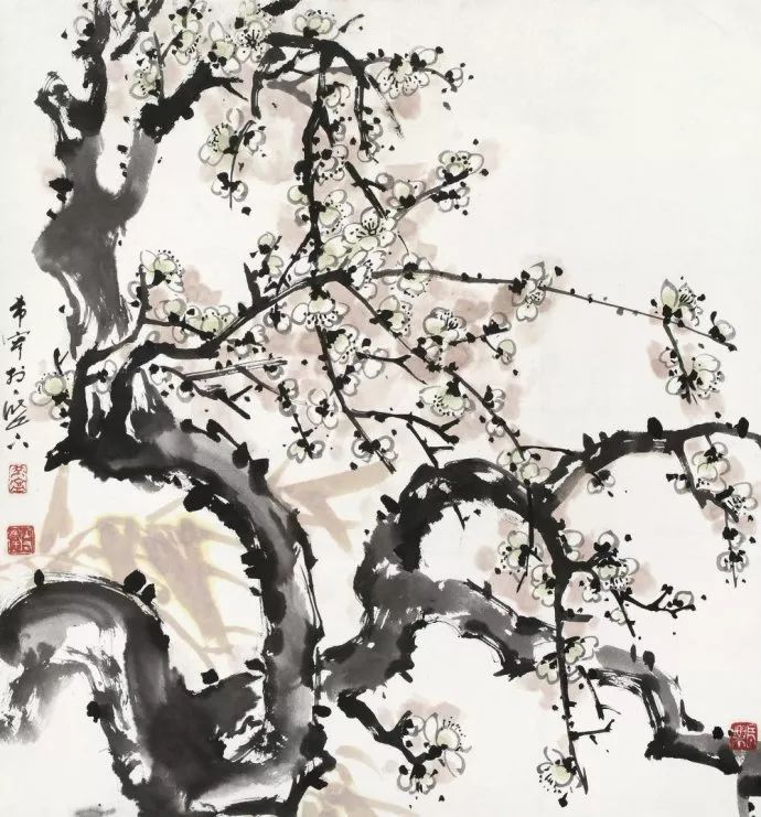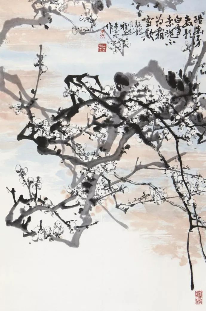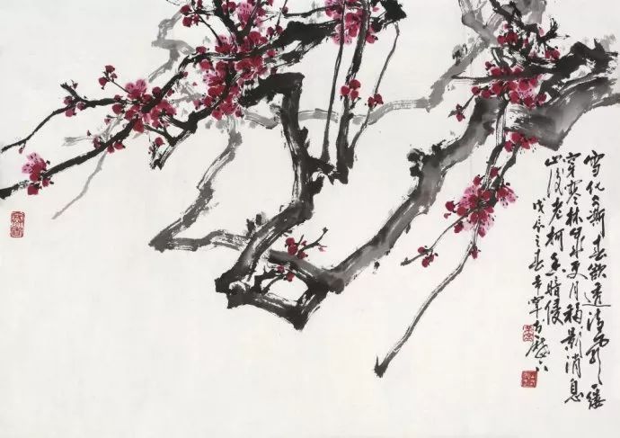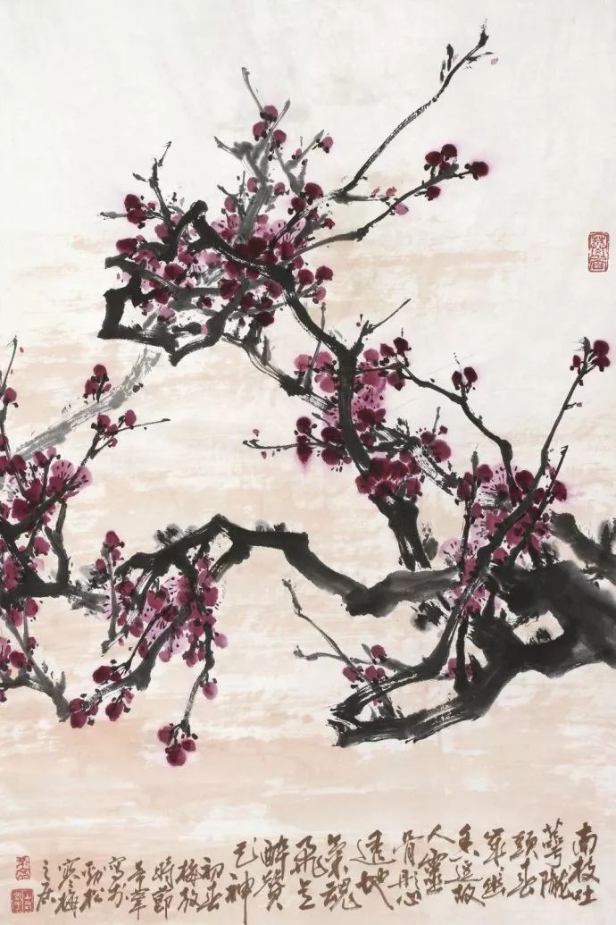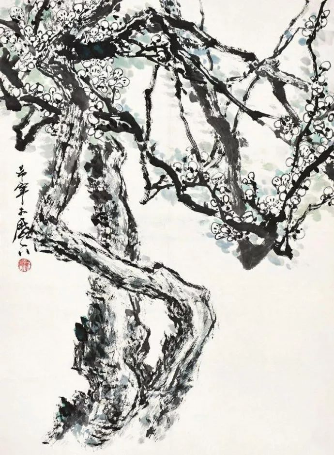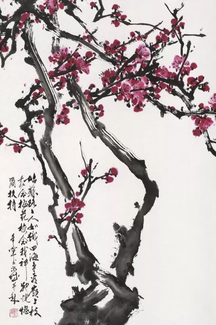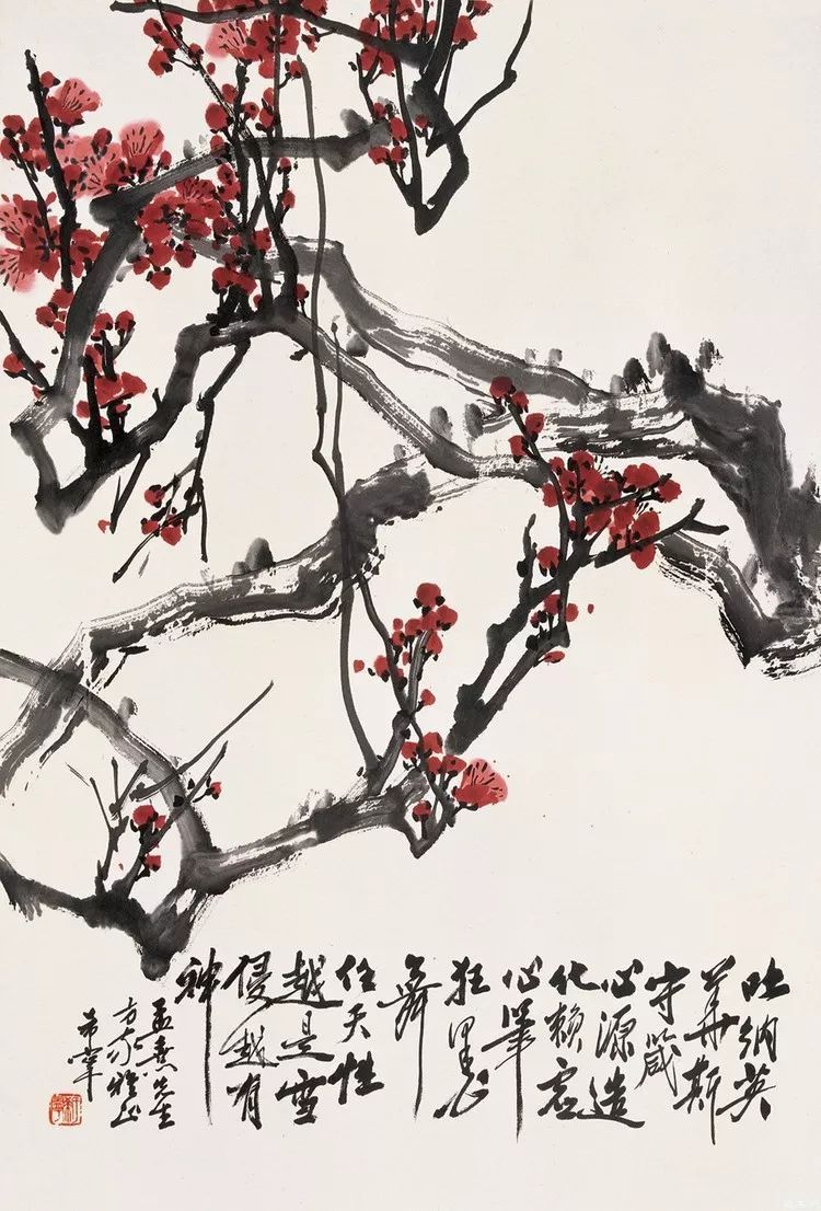 为了专精于梅、轻易陋习,他一度频年早春到江南作梅花写生,深入把抓梅之气质、品格、精神以及健硕如蟠龙的千姿百态。一朝灵感冲动,则诗情、画兴同期迸发,咏梅诗篇,不下百首;写梅佳作,日出不穷。