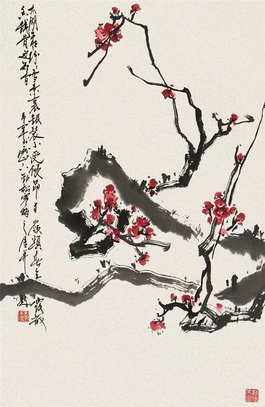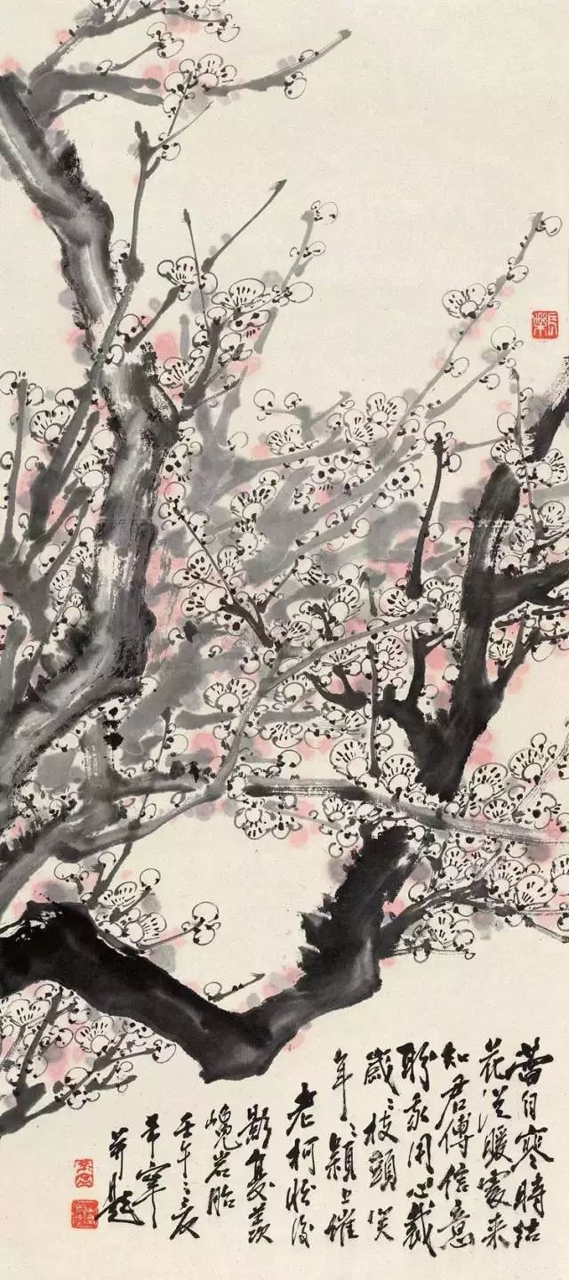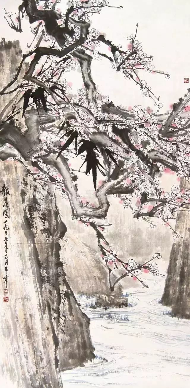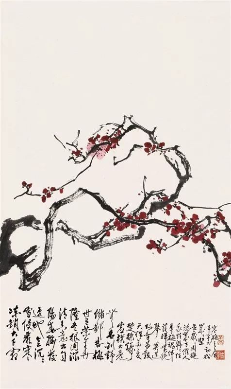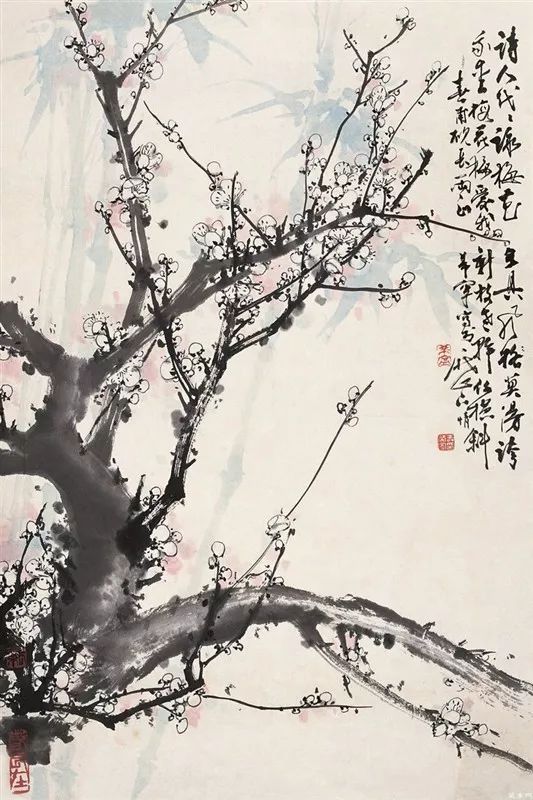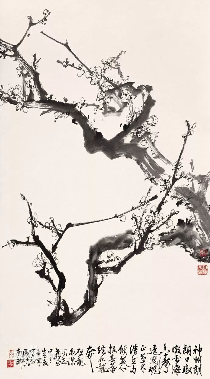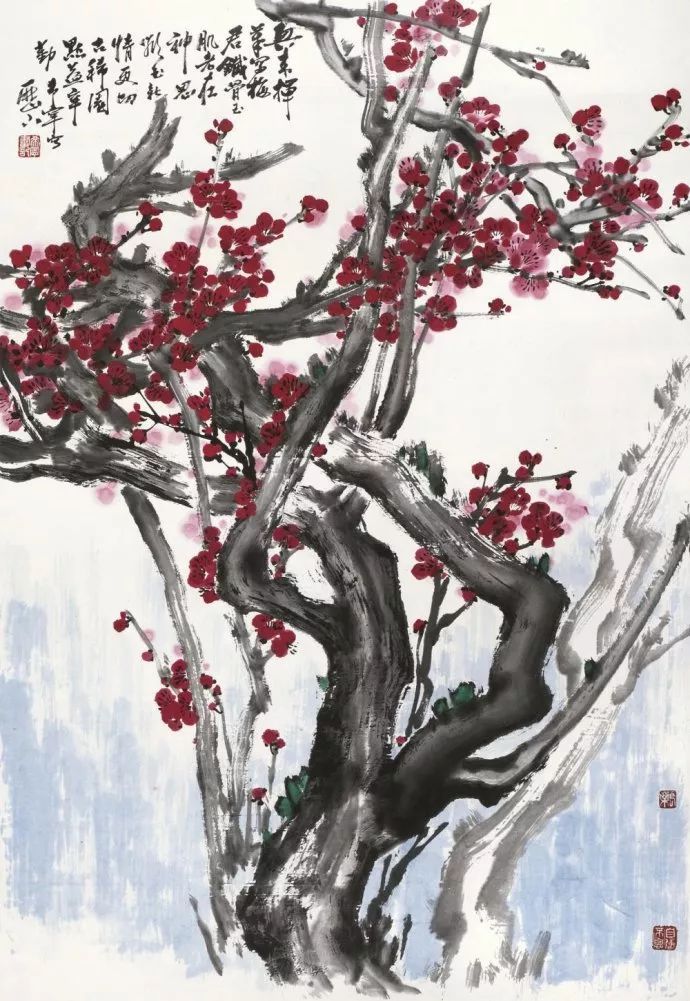 为了专精于梅、轻易陋习,他一度频年早春到江南作梅花写生,深入把抓梅之气质、品格、精神以及健硕如蟠龙的千姿百态。一朝灵感冲动,则诗情、画兴同期迸发,咏梅诗篇,不下百首;写梅佳作,日出不穷。