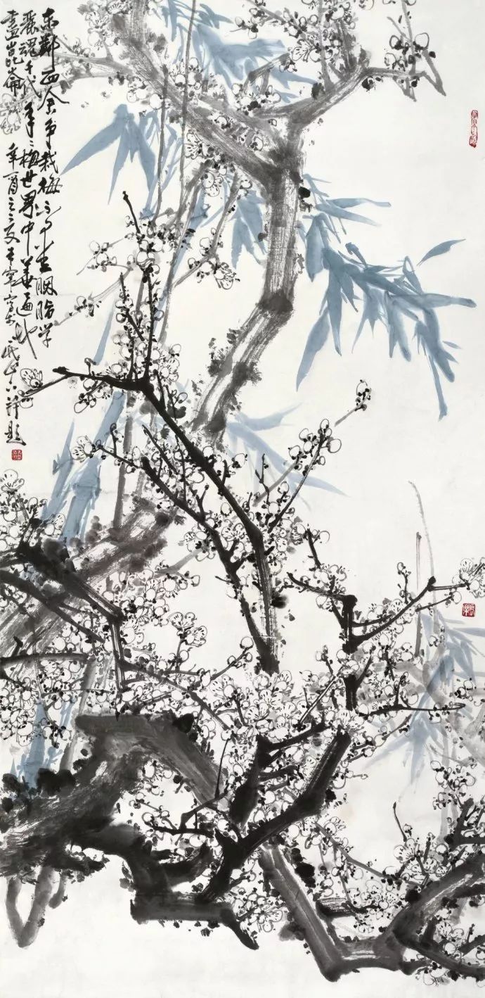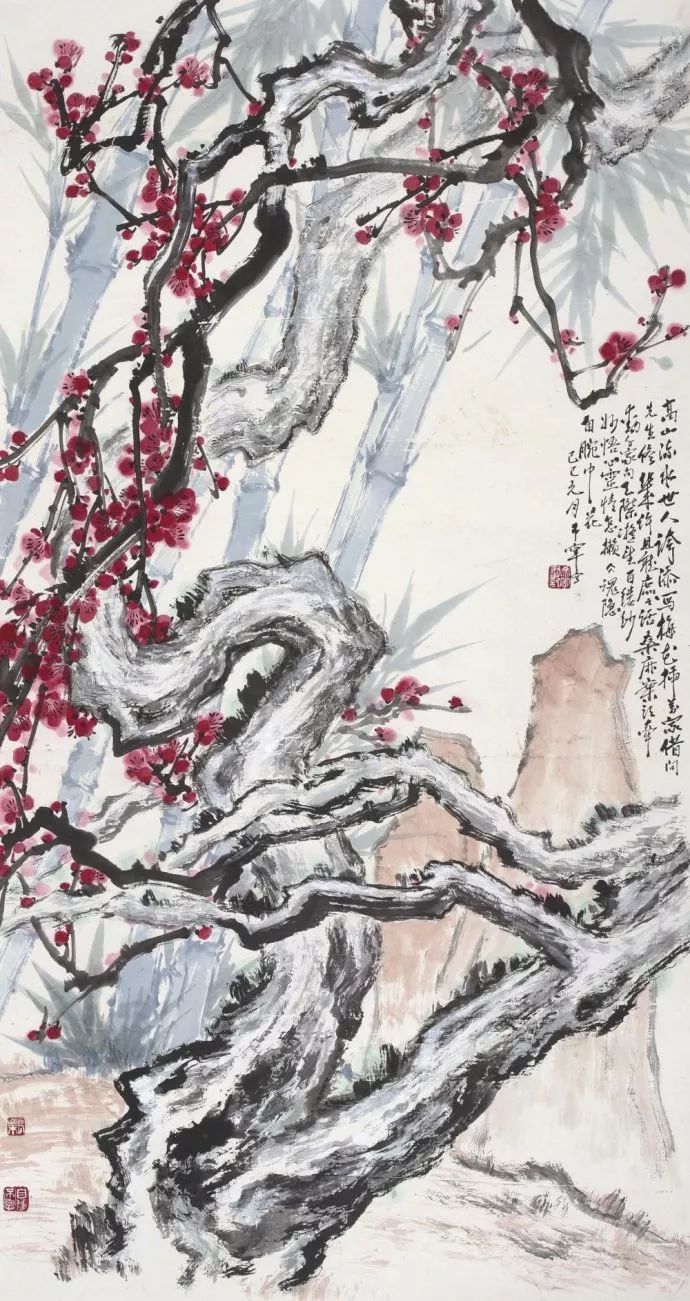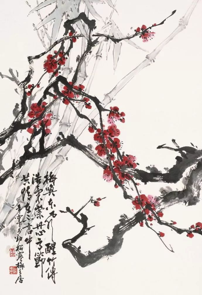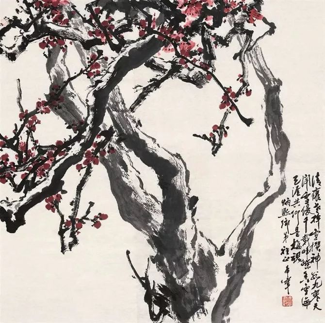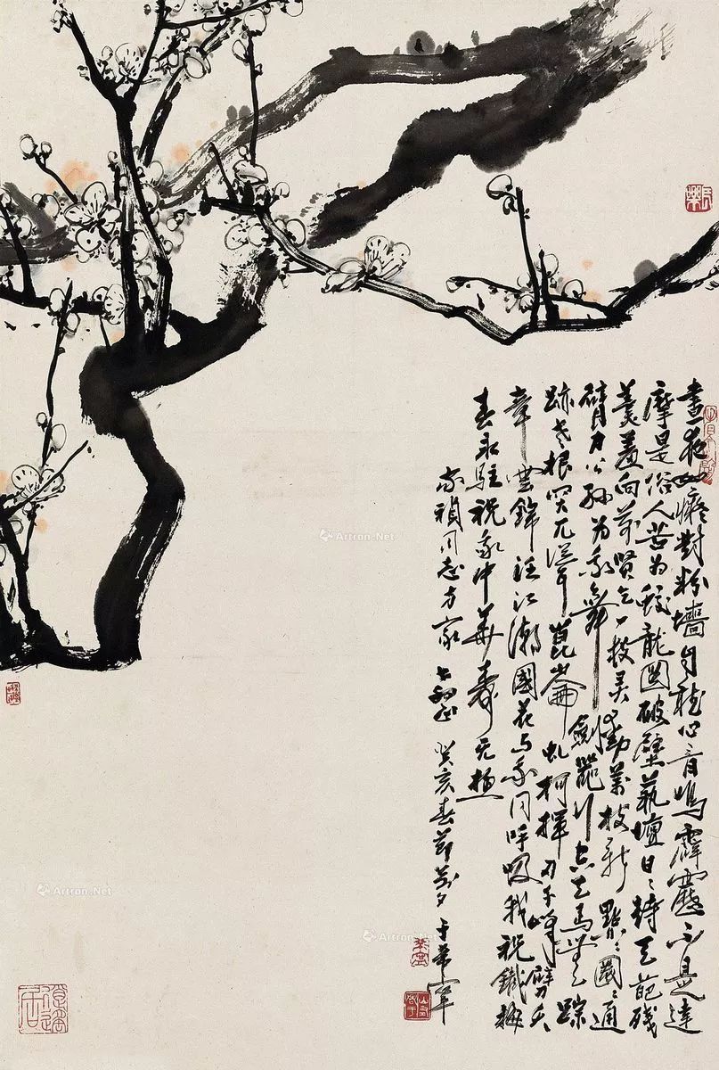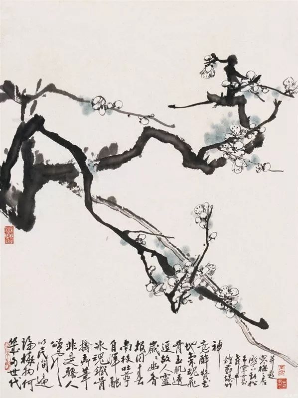 为了专精于梅、轻易陋习,他一度频年早春到江南作梅花写生,深入把抓梅之气质、品格、精神以及健硕如蟠龙的千姿百态。一朝灵感冲动,则诗情、画兴同期迸发,咏梅诗篇,不下百首;写梅佳作,日出不穷。